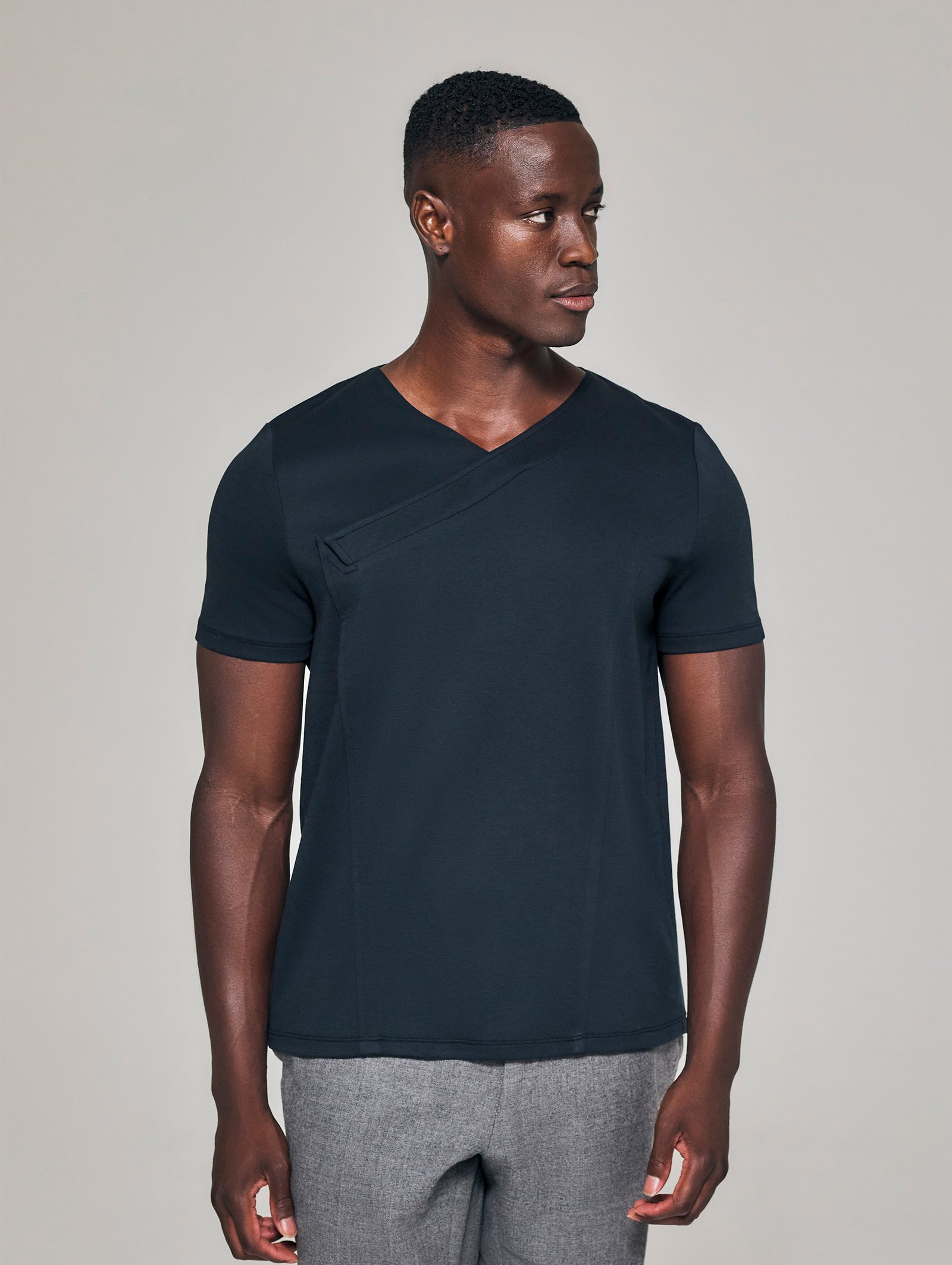 Style No: 0099 | Asymmetric Lapel Fold Cotton T-Shirt