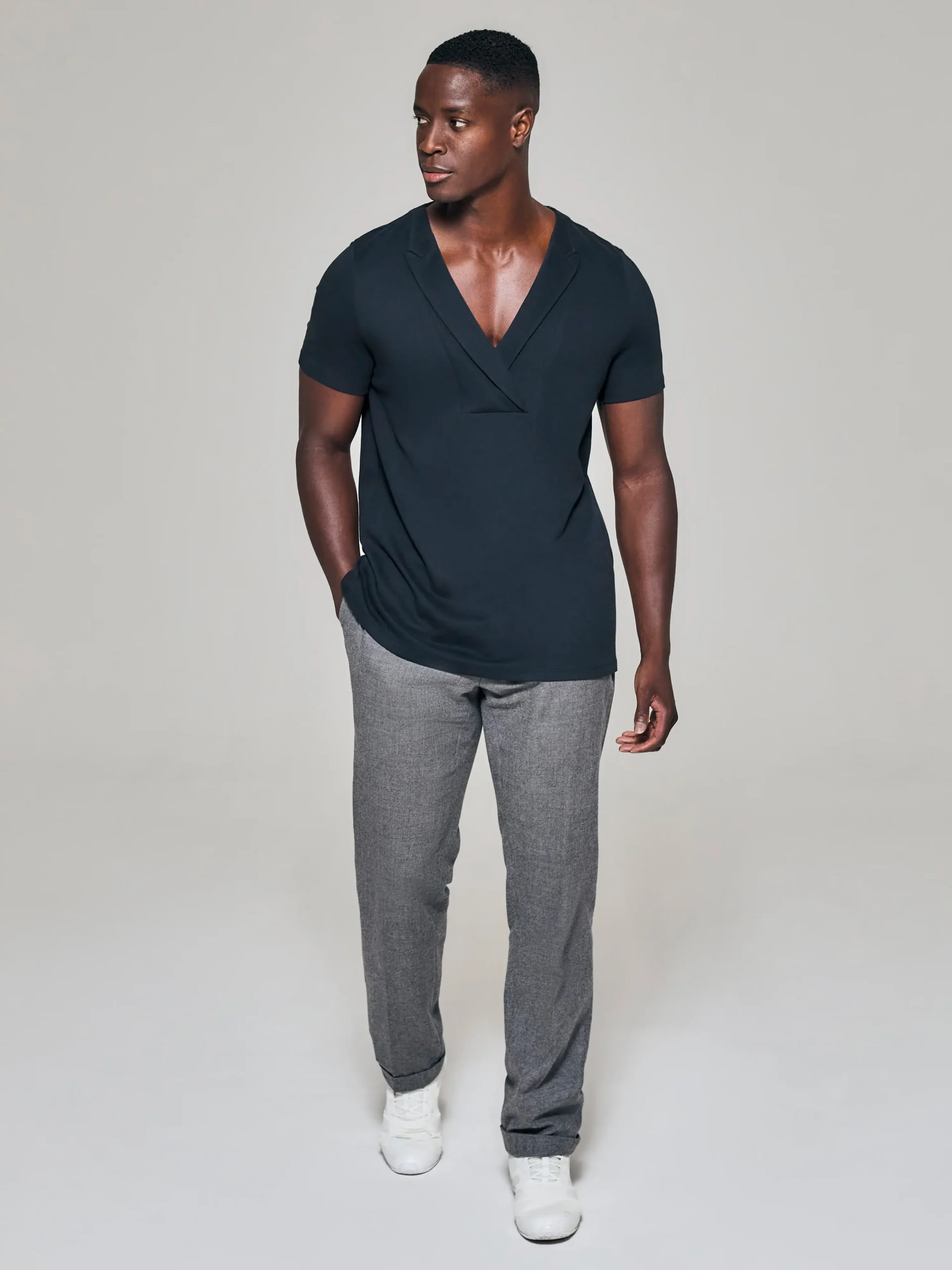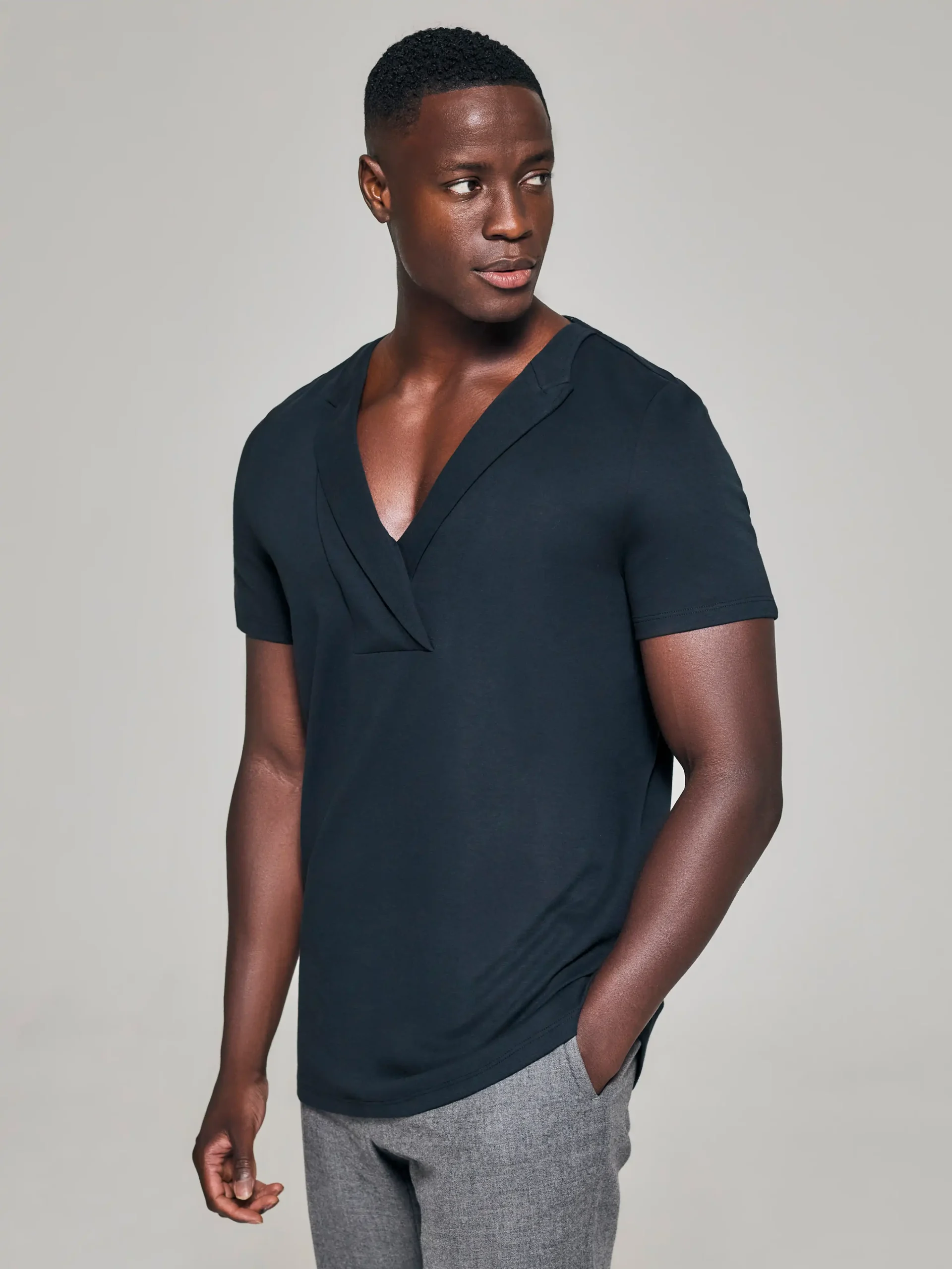 Style No: 0009 | Lapel Bib Cotton T-Shirt
