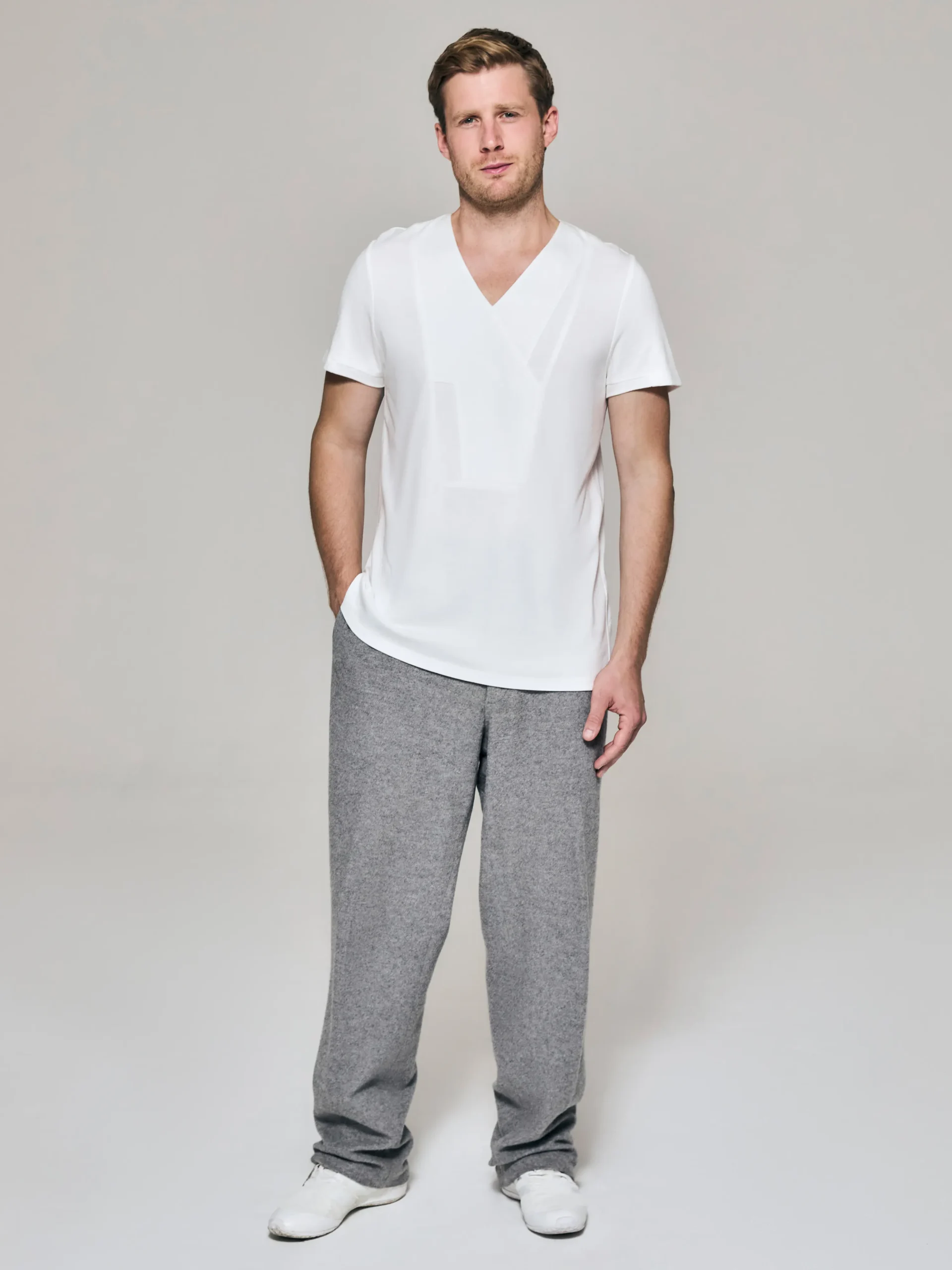 - Slim block fit with side seams, creating a sleek and refined silhouette.