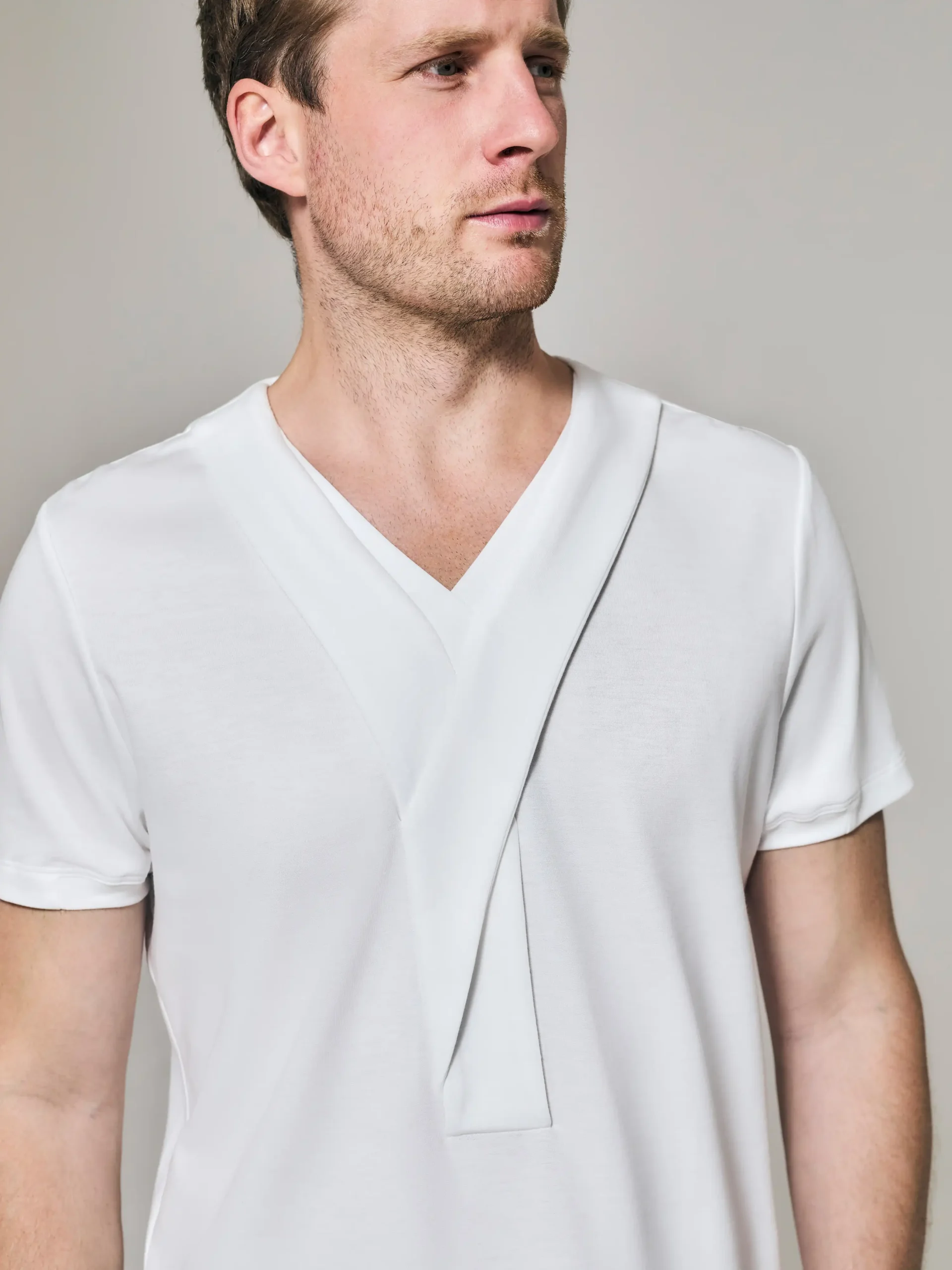 Style No: 0001 | Asymmetric Lapel Bib Cotton T-Shirt