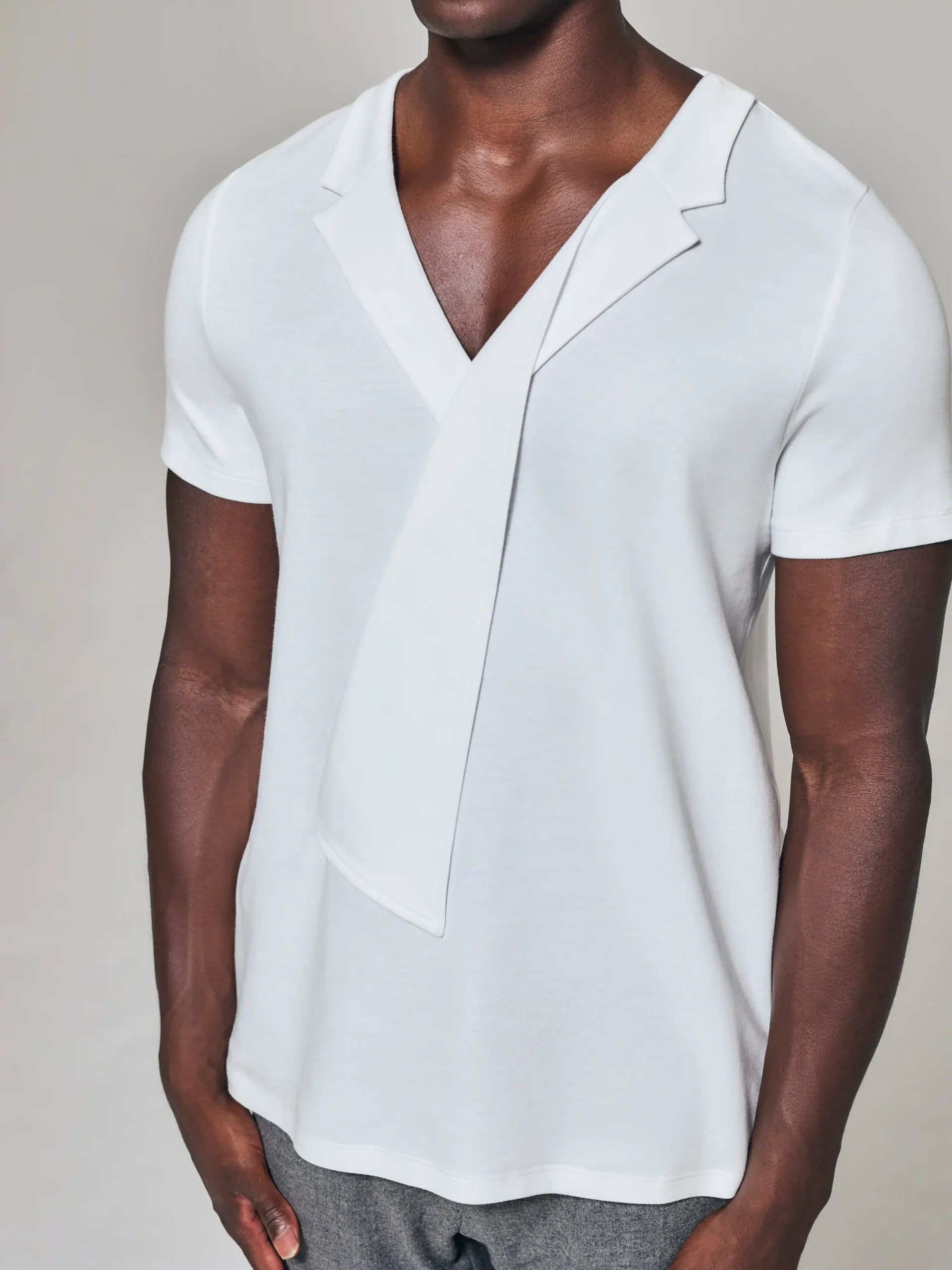 Style No: 0099 | Asymmetric Lapel Fold Cotton T-Shirt